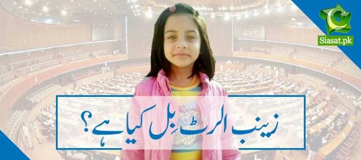 قومی اسمبلی نے 07 فروری 2019 کو بروز جمعہ کو زینب کی دوسری برسی کے موقع پر زینب الرٹ ایکٹ کی قرارداد منظور کر لی ۔2018 میں زینب کو 9 برس کی عمر میں پہلے جنسی ذیادتی کا نشانہ بنایا گیا اور پھر اسے بے دردی سے قتل کر دیا گیا تھا۔ اس ایکٹ کے تحت بچوں کے ساتھ جو بھی جنسی ذیادتی میں ملوث پایا جائے گا یا بچوں کا قتل کرے گا اسے سر عام پھانسی دی جائے گی اور اس ایکٹ کے تحت اب تک جتنےبھی بچے گمشدہ ہیں انہیں بھی تلاش کیا جائے گا اور اس بل کے تحت ایک ہیلپ لائن نمبر1099 بھی متعارف کروائی جائے گی جس کے ذریعے بچوں سے جنسی ذیادتی کے کیسس رپورٹ کیے جائیں گے اور جو بھی کوئی ہیلپ لائن نمبر پر رابطہ کر کے اپنے گمشدہ بچے کی رپورٹ درج کروائے گا اسے فورا بچے کی تصویر کے ساتھ ٹی وی، ریڈیو اور سوشل میڈیا پر نشر کیا جائے گا تاکہ کوئی بھی شخص اگر اس طرح کے بچے کو کہیں بھی دیکھے تو فورا اس نمبر پر رابطہ کرے۔ پاکستان تحریک انصاف کی جانب سے زینب الرٹ ایکٹ ایک بہترین کاوش ہے اس کے تحت جنسی ذیادتی جیسے سنگین جرم کو روکا جا سکتا ہے کیونکہ اس ایکٹ کے تحت جنسی ذیادتی کرنے والے کوسرعام چوراہے پر لٹکایا جائے گا اور پھر دوسرے لوگ بھی اس سے عبرت حاصل کریں گے اور آئندہ یہ جرم کرنے سے پہلے سو بار سوچیں گے۔ لیکن افسوسناک بات یہ ہے کہ یہ قرارداد متفقہ طور پر منظور نہیں ہو سکی اور کثرت رائے سے منظور کی گئی اور کچھ مذہبی سکالرزکا کہنا ہے کہ اس طرح انسانی جسم کی بے حرمتی ہوگی حالانکہ اس سے ذیادہ انہیں اس بات کی ذیادہ پرواہ ہونی چاہیے تھی کہ جن معصوموں کے ساتھ جنسی ذیادتی کی جاتی ہےاور پھر انہیں خوفناک طریقے سے قتل کیا جاتا ہے ان کی تکلیف ذیادہ ہوتی ہے تاہم چونکہ ایسے لوگوں نے ابھی سیاست بھی کرنی ہے اس لیے انہوں نے اس قرارداد کی مخالفت کی جس کی وجہ سے یہ متفقہ طور پر منظور نہیں کی جا سکیی۔ دوسری جانب خیبر پختونخوا میں بھی اس سلسلے میں کارروائی کی جاری ہے اور اس بات پر تو سب کا ہی اتفاق پایا جاتا ہے کہ ایسے افراد کو سرعام پھانسی دی جائے تاہم سر عام پھانسی دینے کے حوالے سے مشکلات اور مسائل موجود ہیں جس کی وجہ سے اس بات پر اتفاق رائے بن رہا ہےکہ ایسے افراد کو پھانسی دینے کے بعد اسکی لاش کو سر عام رکھا جائے تاکہ دیگر لوگ عبرت پکڑیں ۔